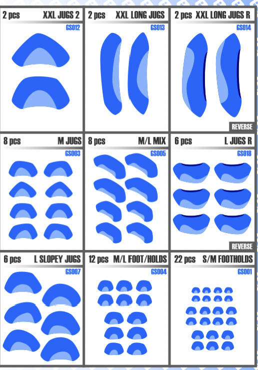 Ergo     S Jibs 50/70/90/110/130 301.29 EUR Secret Holds  - Ergo Range - PU - All Texture - 36 Units - Size S - Jibs 36 amazing Small holds. You can set them separately and individually… but why? If you can use the Blocker Angles System...