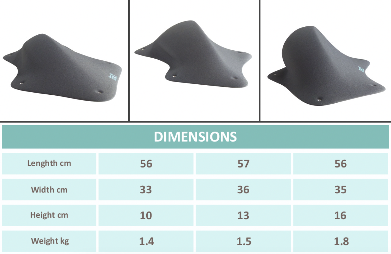 Comfortable and ergonomic grips. Suitable for all climbing levels and wall angles.